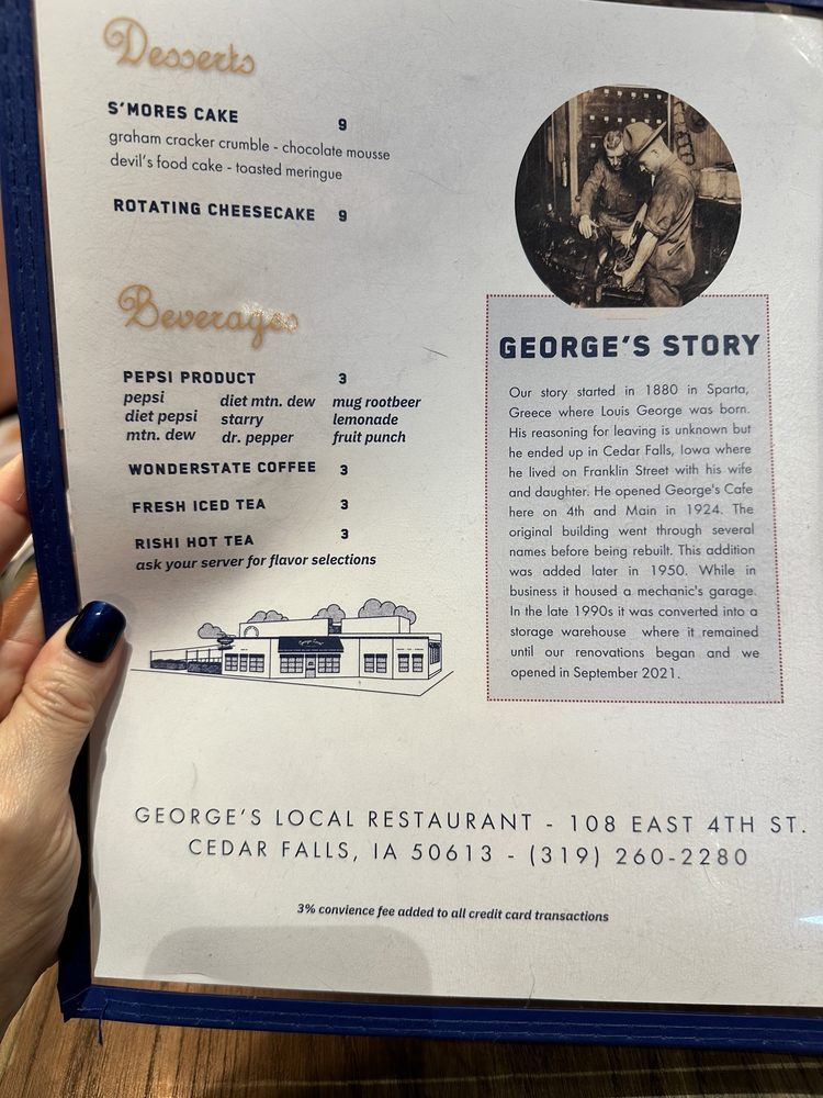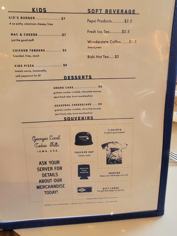 Introducing George's Local, a delightful addition to Cedar Falls' dining scene, where New American fare meets a lively atmosphere. This inviting spot, located at 108 E 4th St, is perfect for casual hangouts or special gatherings and offers an array of dining options, including outdoor seating and private dining rooms.